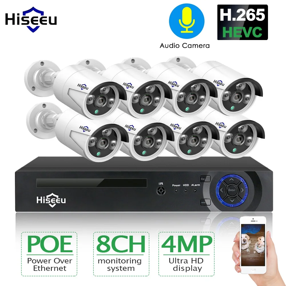 Special Offer H.265 8CH 4MP POE caméra de sécurité système de vidéosurveillance POE NVR extérieur étanche Kit de Surveillance vidéo Hiseeu Discount 52% Today!