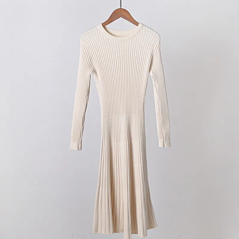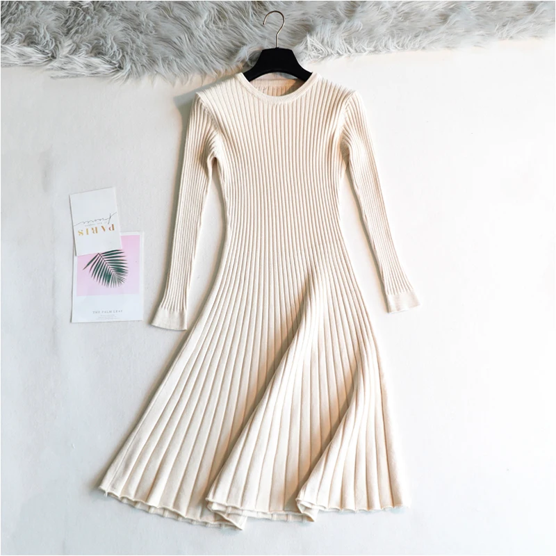 Product Name: 2019 femme élégant automne hiver chandail moulante patineuse solide robes pour les femmes longue épaisse tricot robe chaude pleine manches a ligne