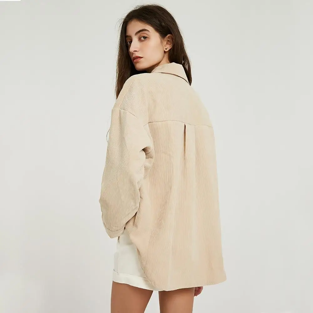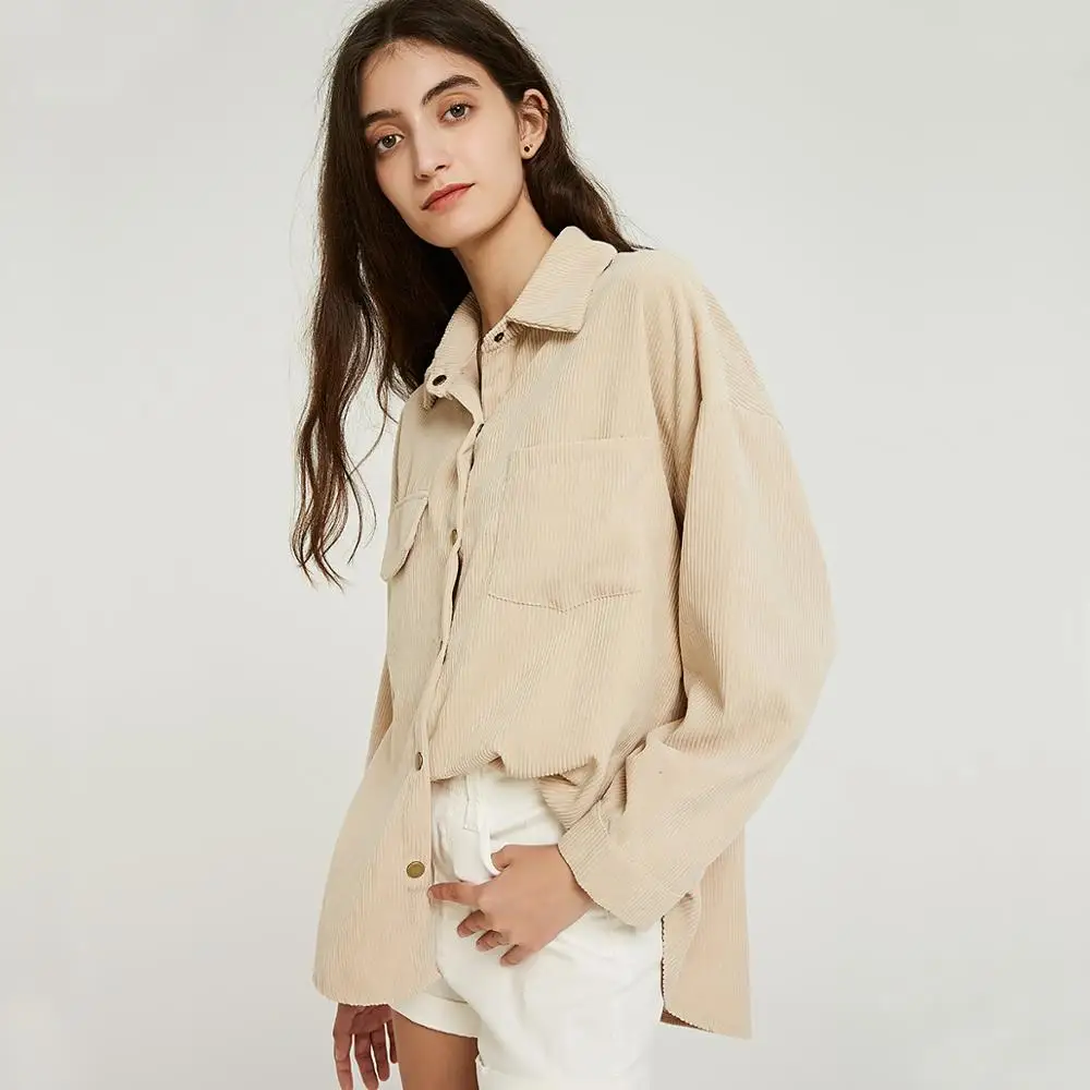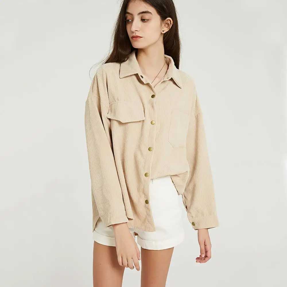Product Name: Wixra femmes solide Blouse dames décontracté velours côtelé à manches longues col rabattu poches chemises 2019 automne printemps tops basiques