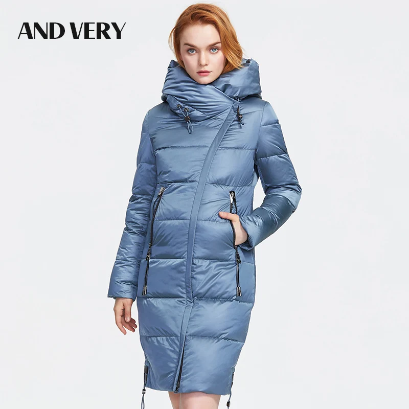Special Offer ANDVERY 2019 hiver nouvelle collection femmes doudoune épais coton bleu à capuche parkas chauds grande taille style long manteau femmes 9853D Discount 63% Today!