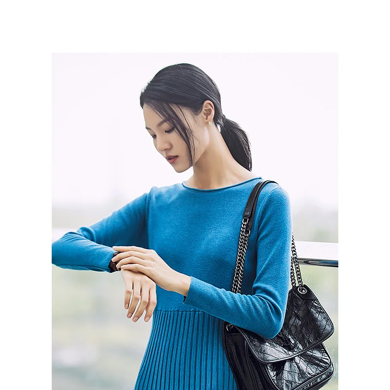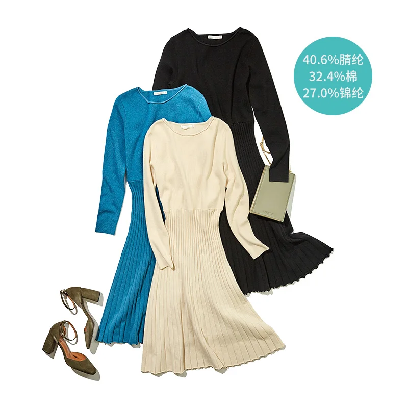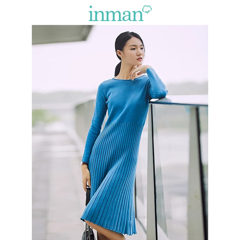 Special Offer INMAN 2019 automne nouveauté coton col rond mode coréenne mince tout assorti à manches longues a ligne femmes robe Discount 65% Today!