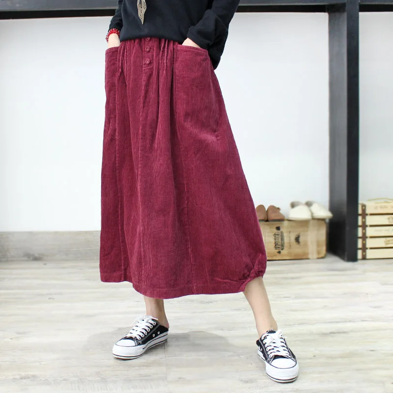 . (10% Off) Acheter Chic poche solide couleur Velours vintage Bourgeon jupe mori fille 2018 automne hiver Pas Cher Prix.