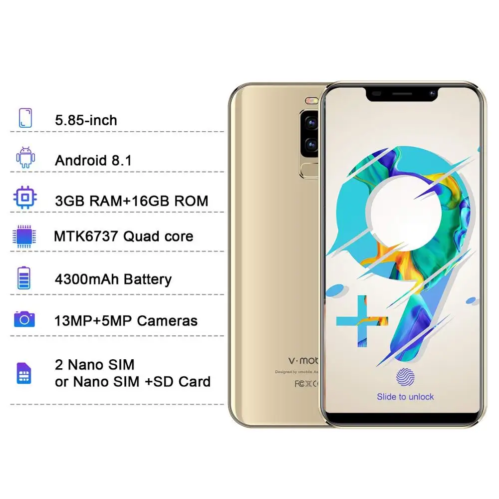 Product Name: 4G LTE Empreinte de l écran TEENO VMobile S9 téléphone Mobile Android 8.1 3GB + 16GB 5.84 \"199 écran 13MP caméra celulaire Smartphone telephone portable debloque francais