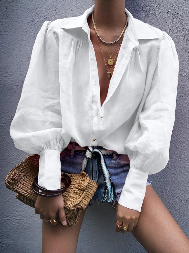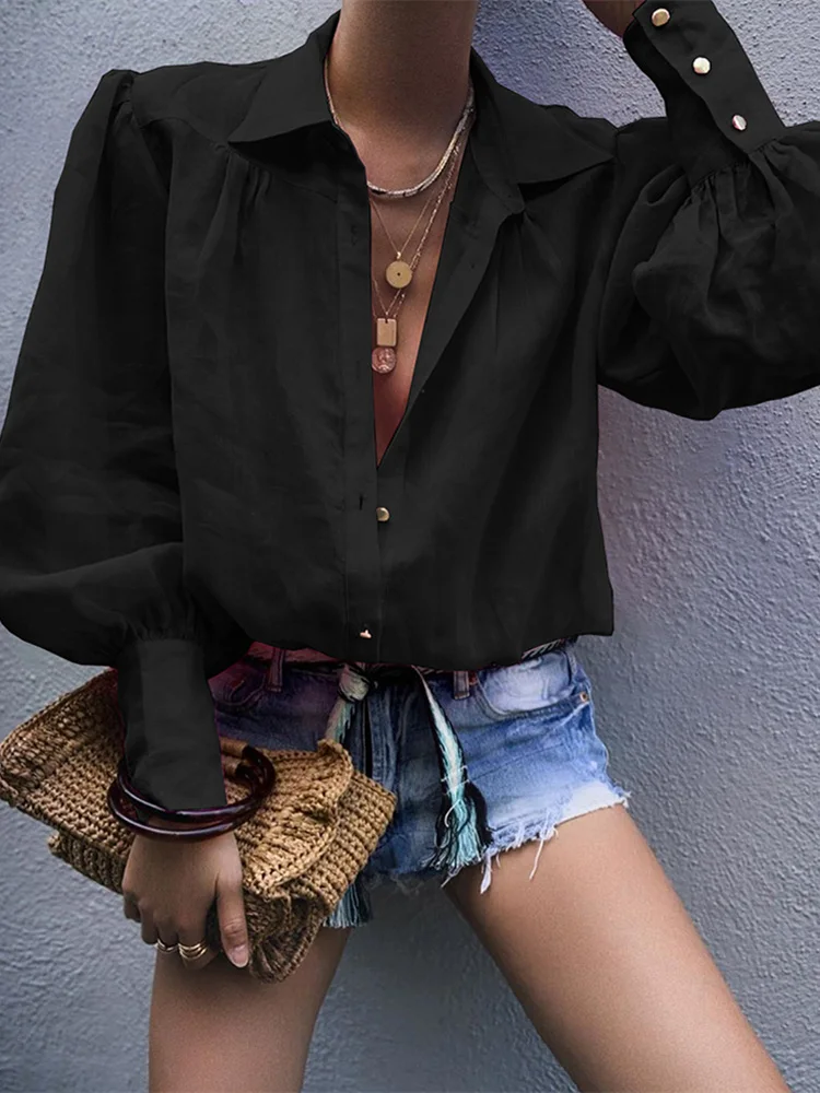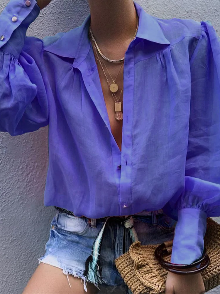 Special Offer 2019 automne femmes élégant OL bureau loisirs Blouse femme coloré haut basique solide lanterne manches décontracté chemise Discount 20% Today!