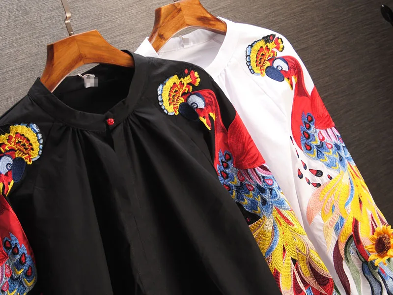 Product Name: 2019 printemps et été coton casual chemises brodées à manches longues chemises femme plein bouton imprimé o cou lanterne manches