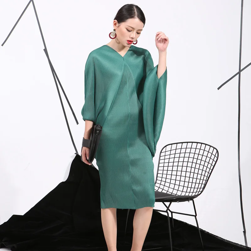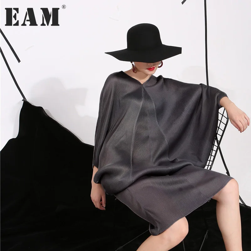 Special Offer [EAM] 2019 printemps à la mode nouveau sertissage manches chauve souris conception grande taille en vrac grande taille couleur unie robe femmes mode FU11191 Discount 30% Today!