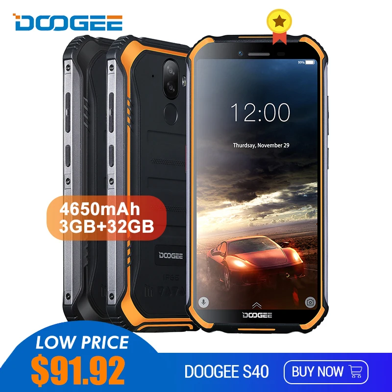. (30% Off) Achat DOOGEE S40 IP68 IP69K 4G téléphone portable robuste 5.5 pouces affichage 4650mAh MT6739 Quad Core 3GB RAM 32GB ROM Android 9.0 8.0MP Mobile Pas Cher Prix.