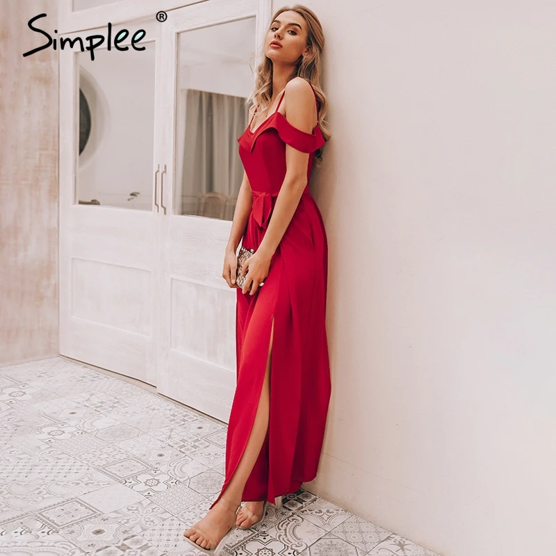 Special Offer Simplee Sexy hors épaule femmes combinaison barboteuse élégant taille haute rouge combinaison longue été jambe large dame combishort salopette 2019 Discount 31% Today!