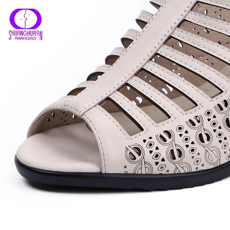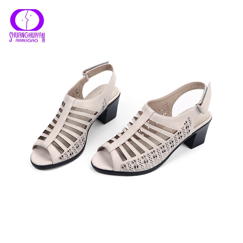 Product Name: AIMEIGAO 2018 boucle sangle femmes gladiateur sandales Peep Toe chaussures d été talons épais femmes sandales en cuir souple grande taille chaussures