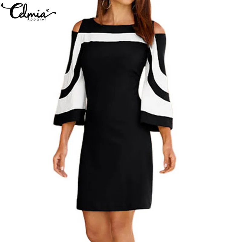Special Offer 2019 Celmia femmes Sexy robe été élégant noir blanc Colorblock 3 4 manches décontracté Slim bureau travail dames grande taille Vestidos Discount 41% Today!