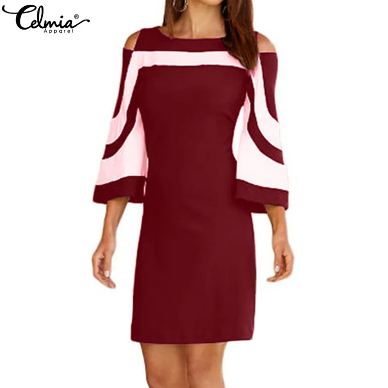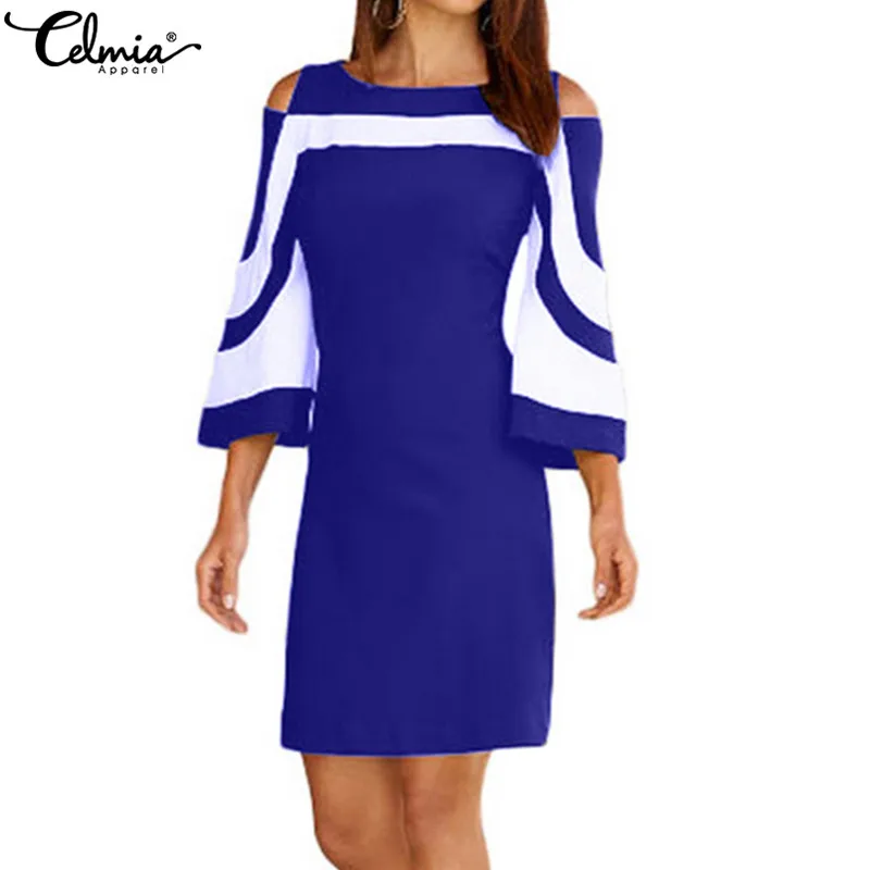 . (41% Off) Vente 2019 Celmia femmes Sexy robe été élégant noir blanc Colorblock 3 4 manches décontracté Slim bureau travail dames grande taille Vestidos Pas Cher En Ligne.