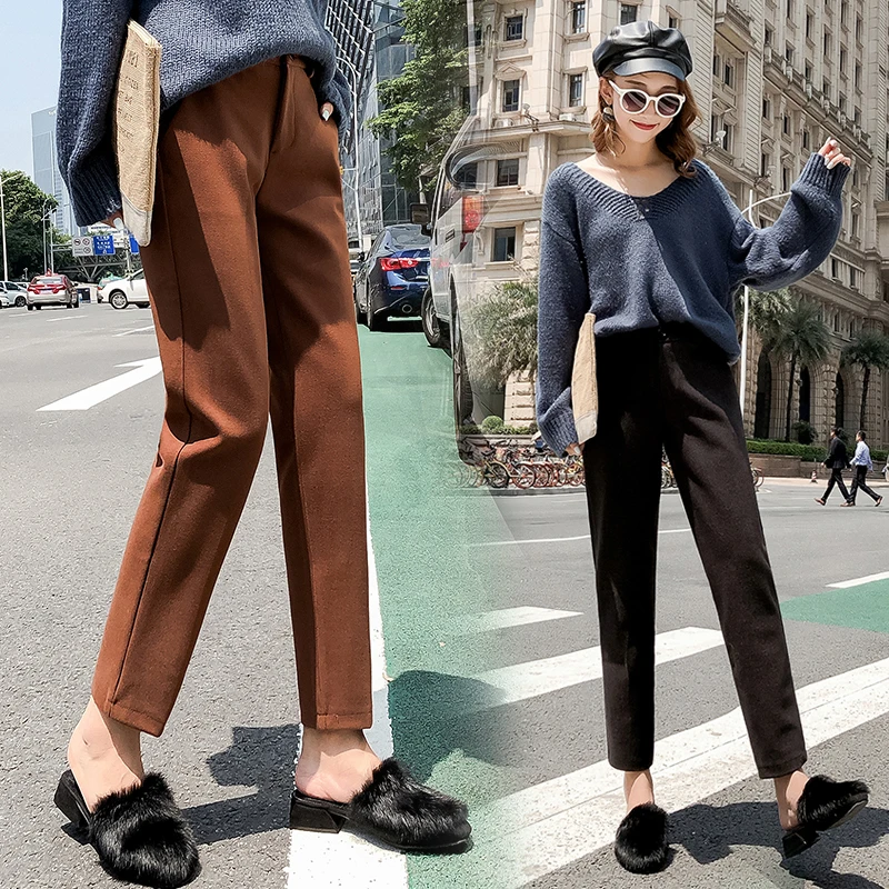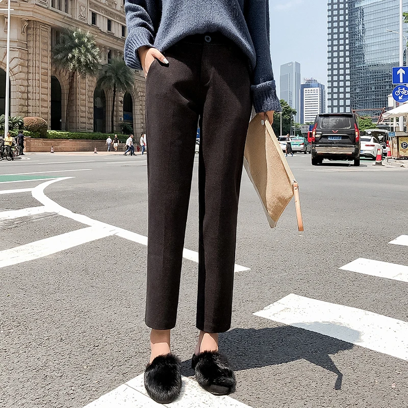 Special Offer 2019 automne nouveau femmes élastique laine pantalon femme grande taille pantalon décontracté noir gris sarouel hiver laine cheville longueur pantalon Discount 45% Today!