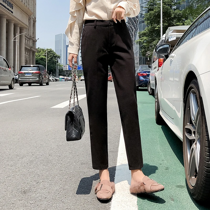 Product Name: 2019 automne nouveau femmes élastique laine pantalon femme grande taille pantalon décontracté noir gris sarouel hiver laine cheville longueur pantalon