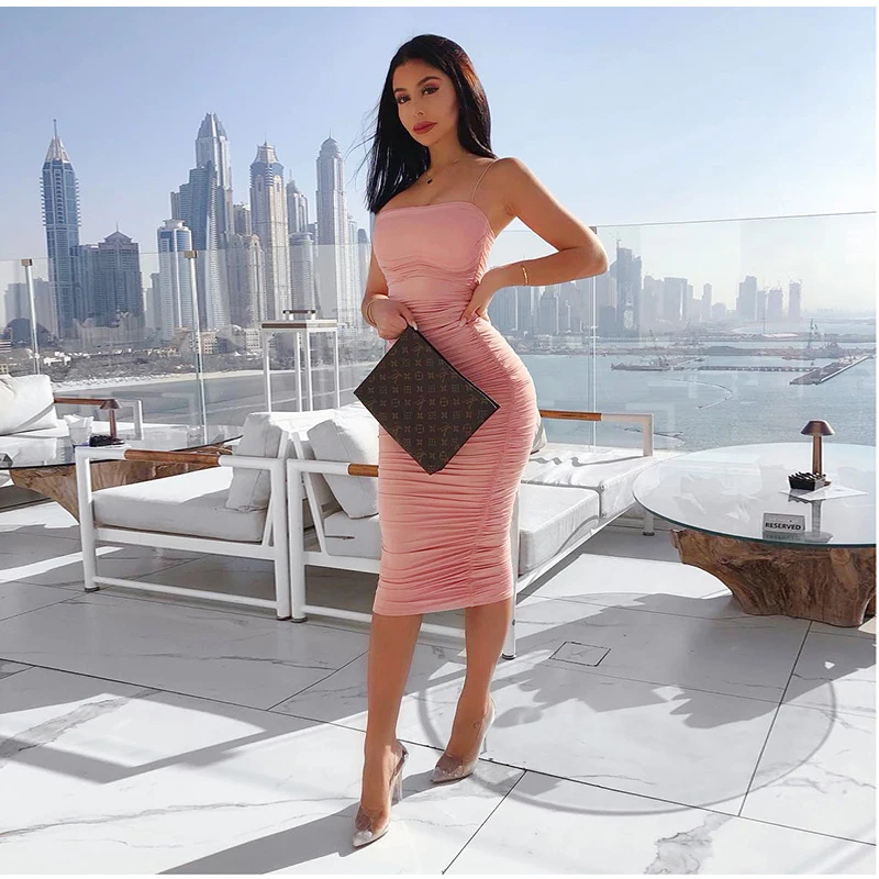Special Offer NewAsia 2 couches blanc robe d été femmes 2019 élégant froncé Maxi robe rose fête longue robe Sexy robes femme fête nuit Discount 45% Today!