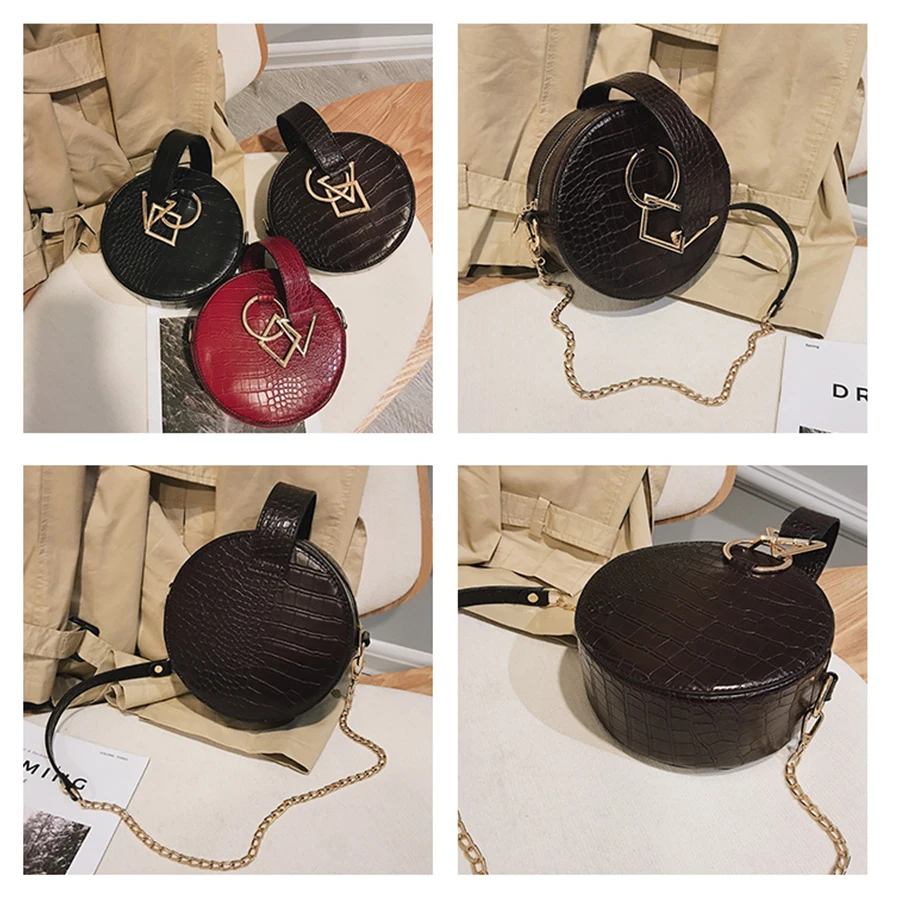 Product Name: Crocodile cuir sac rond femmes sacs à bandoulière sacs à bandoulière pour les femmes 2019 soirée poignet sac cercle dames sacs à main W293