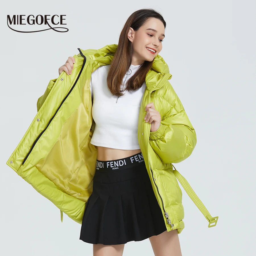 Special Offer MIEGOFCE 2019 nouveau hiver veste femme de haute qualité couleurs vives isolé bouffant manteau col capuche Parka coupe ample avec ceinture Discount 78% Today!