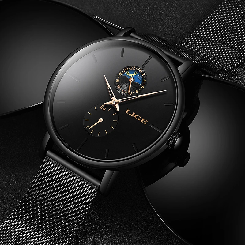 Product Name: 2019 LIGE hommes montres Top marque de luxe Quartz hommes montre maille ceinture de luxe étanche Sport montre hommes mâle horloge homme montre bracelet