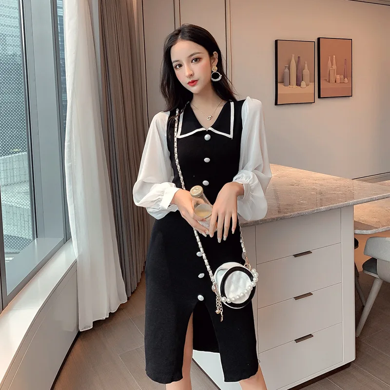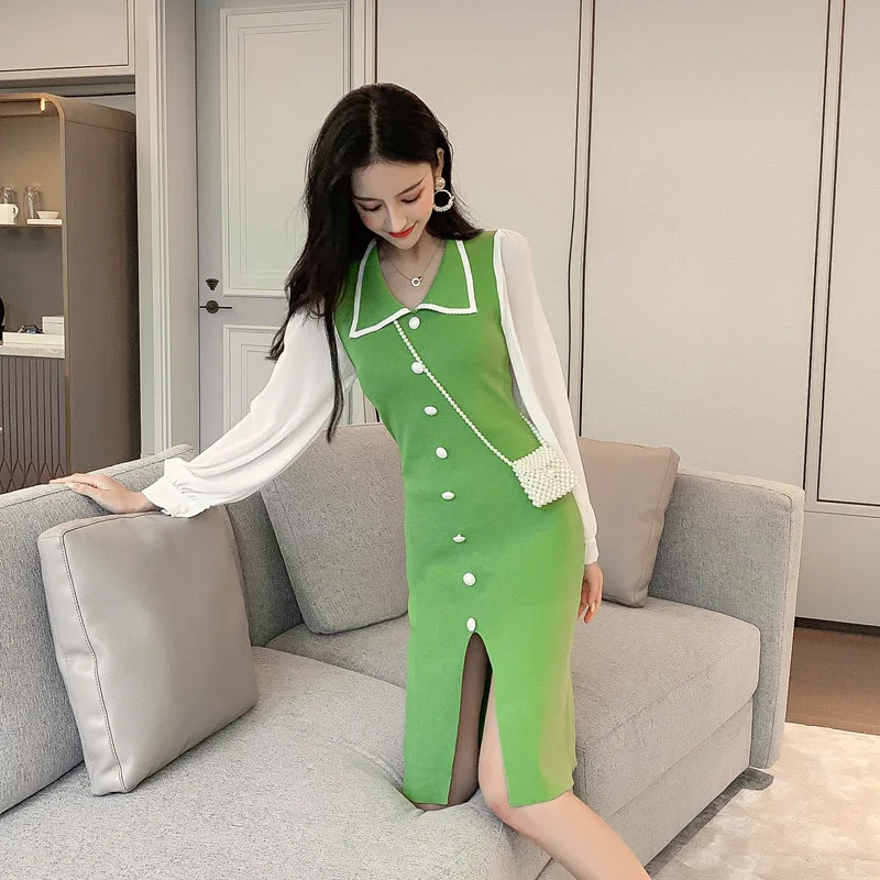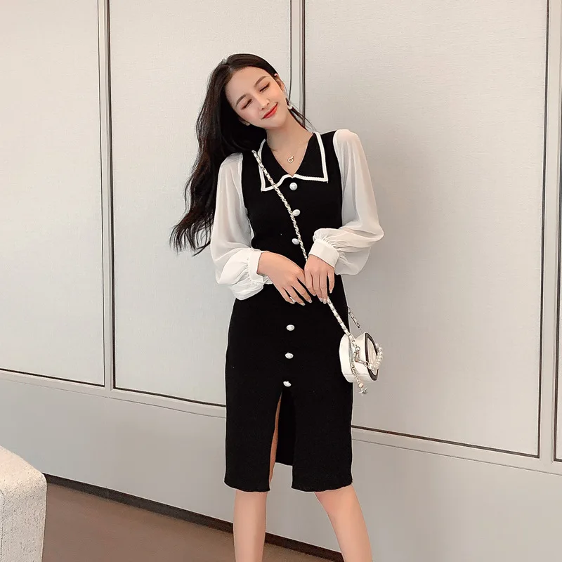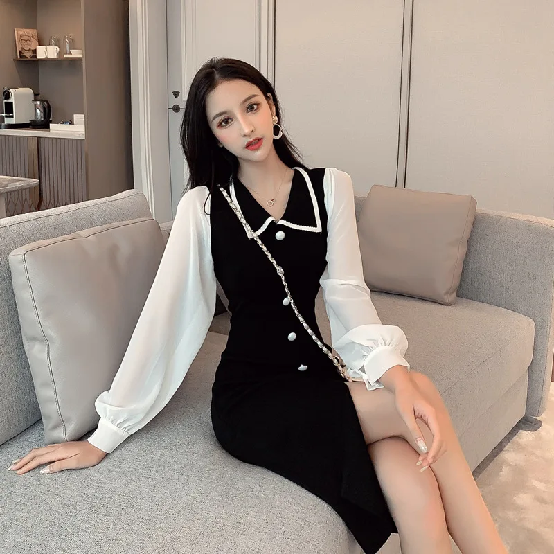 Special Offer 2019 nouvelles femmes robe mode hiver neige spins tricot couture couleur à manches longues robe Discount 0% Today!