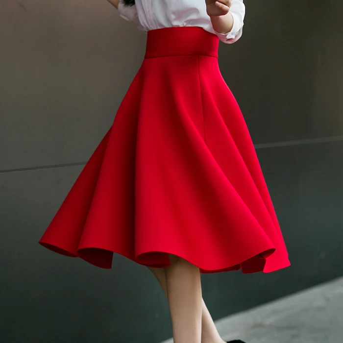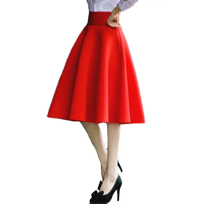 Product Name: 5XL jupe grande taille jupes taille haute femmes blanc genou longueur bas jupe plissée Saia Midi rose noir rouge bleu 2019