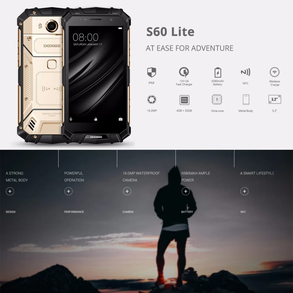 Product Name: DOOGEE S60 lite téléphone portable IP68 étanche 5.2 \"FHD 4 GB + 32 GB MT6750T octa core 16MP empreinte digitale 5580 mAh Android 7.0 Smartphone