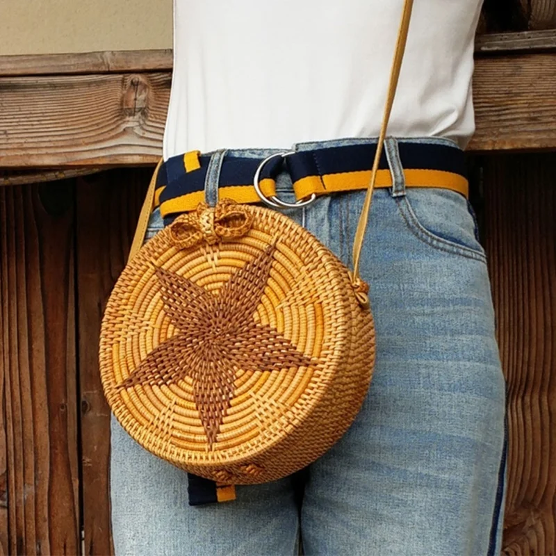 Special Offer 2019 sac à main en paille tissé à la main rond sac en bambou bohème rotin sacs à bandoulière pour femmes Style plage sacs à bandoulière circulaires Discount 25% Today!