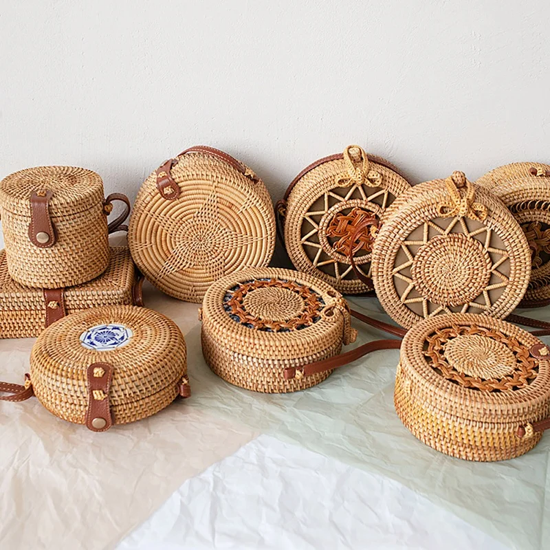 Product Name: 2019 sac à main en paille tissé à la main rond sac en bambou bohème rotin sacs à bandoulière pour femmes Style plage sacs à bandoulière circulaires