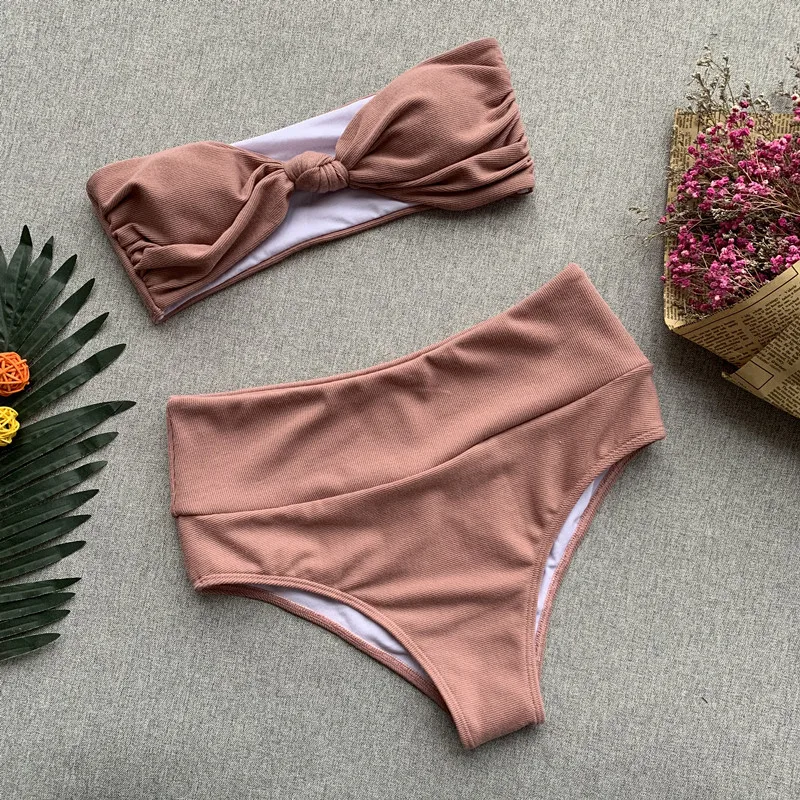 Product Name: Sexy avant noeud papillon côtelé taille haute Bandeau Bikini 2019 maillots de bain pour femmes femmes maillot de bain femme maillot de bain maillot de bain Biquini