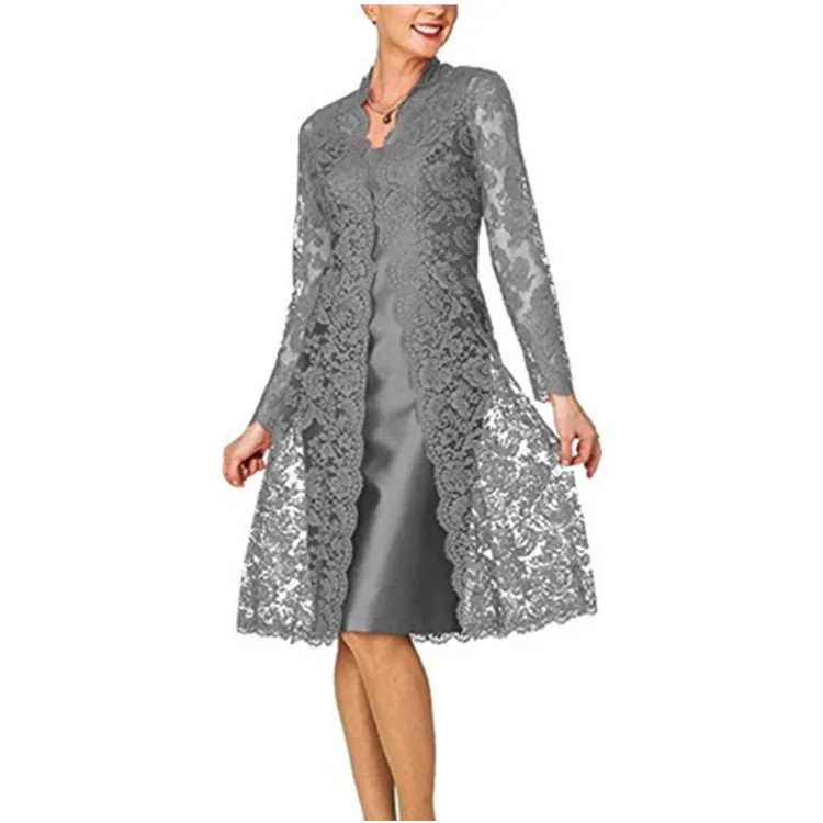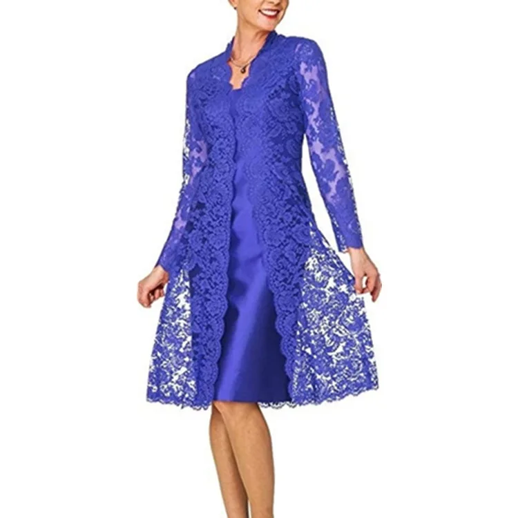 Product Name: 2019 femmes été automne deux pièces charmante robe couleur unie robe de fête grande taille bureau dame robes à manches longues robe en dentelle