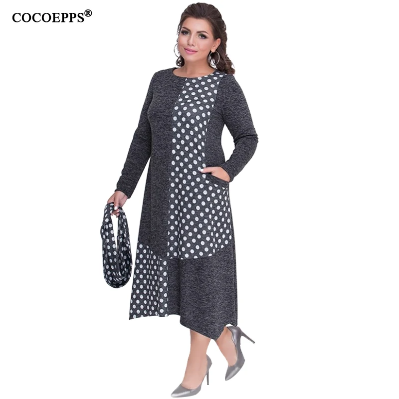 Special Offer COCOEPPS grandes tailles automne femmes robes 2019 hiver grande taille robe ample femme longue grande taille robe femmes vêtements 5XL 6XL Discount 35% Today!