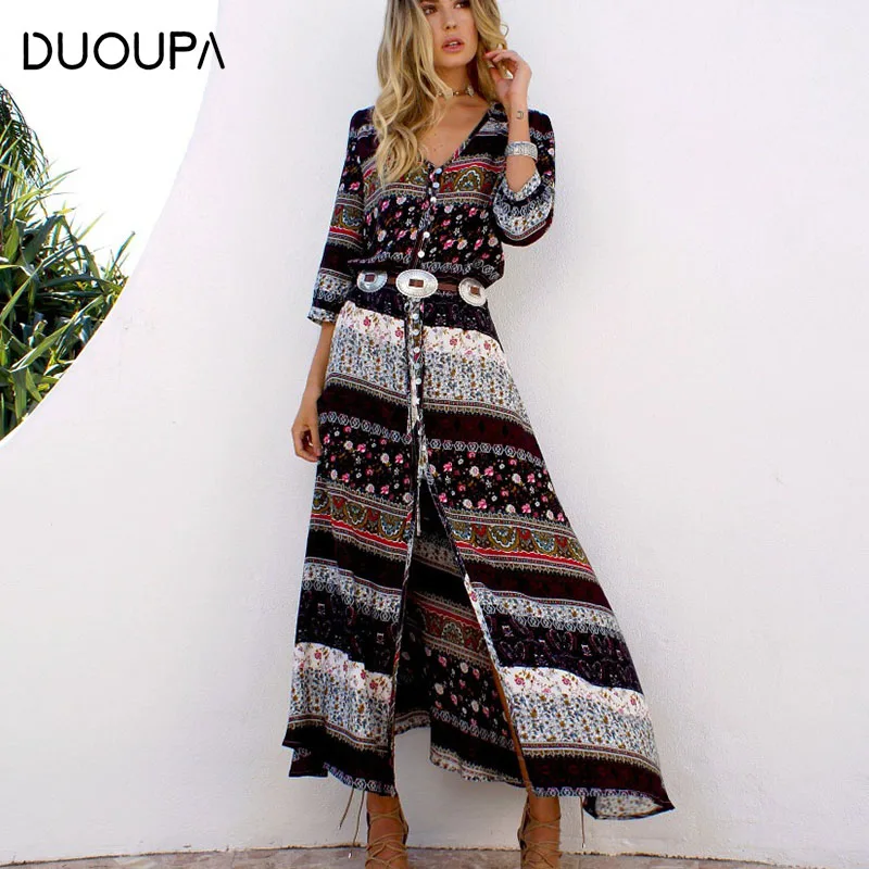 Special Offer DUOUPA 2019 nouvelle Bohème impression longue robe femmes maxi longue robe imprimé floral rétro hippie chic marque vêtements boho robe Discount 35% Today!