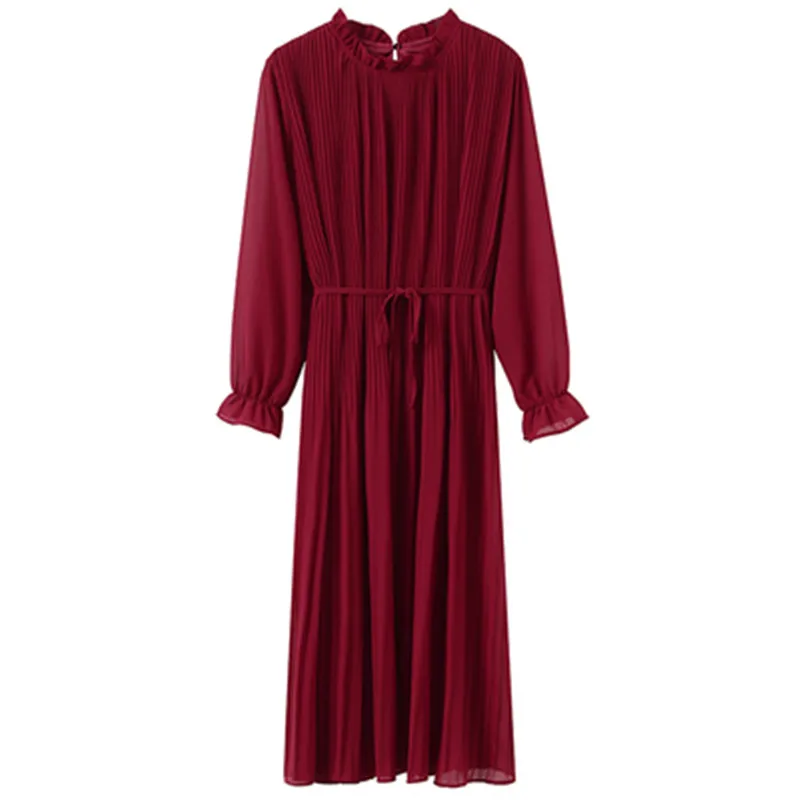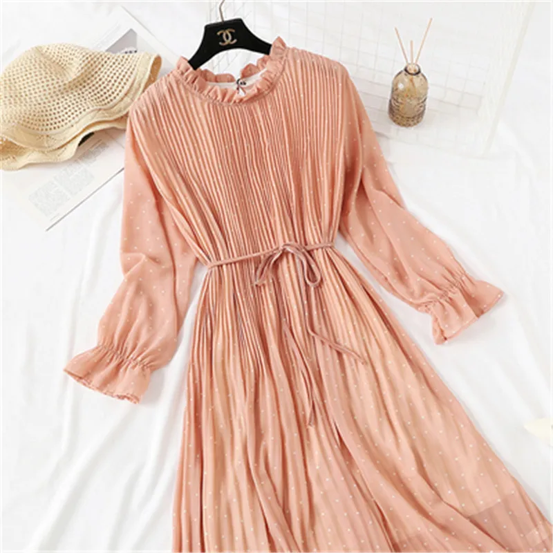 Product Name: 2019 printemps été nouveau Hot femmes imprimer robe en mousseline de soie plissée mode femme manche évasée décontracté Lotus feuille cou de base Dresses86