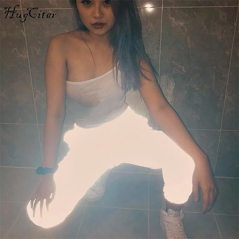 Product Name: Hugcitar taille haute lâche leggings réfléchissants 2018 automne hiver femmes nouveau mode club spécial harem pantalon