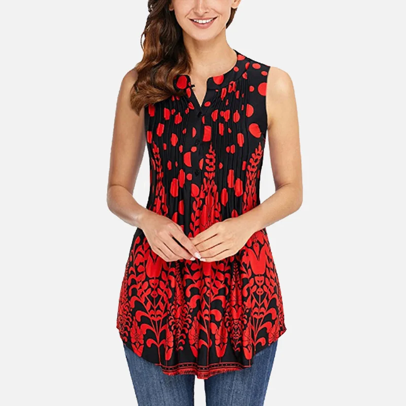 Product Name: Printemps tunique imprimé femmes chemise Blouse 3 4 manches plissées hauts et chemisiers femmes 2019 été mode chemises de grande taille 5XL