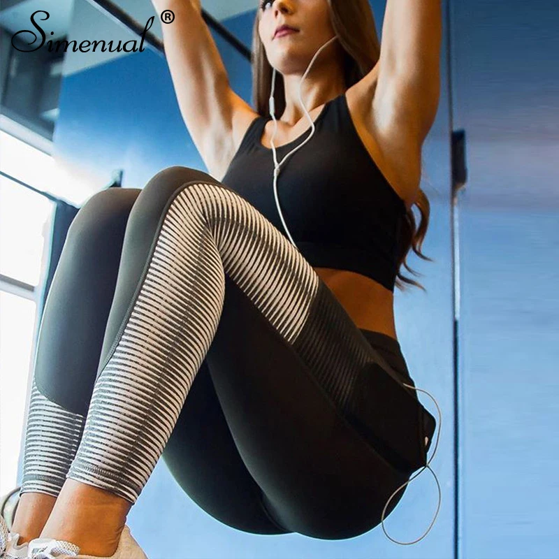 Special Offer Simenual Harajuku rayé leggings pour fitness femmes 2018 maille poche athloisirs legging vêtements de sport mode musculation jegging Discount 40% Today!