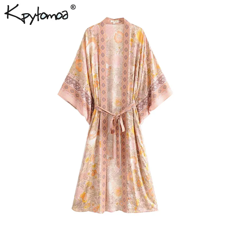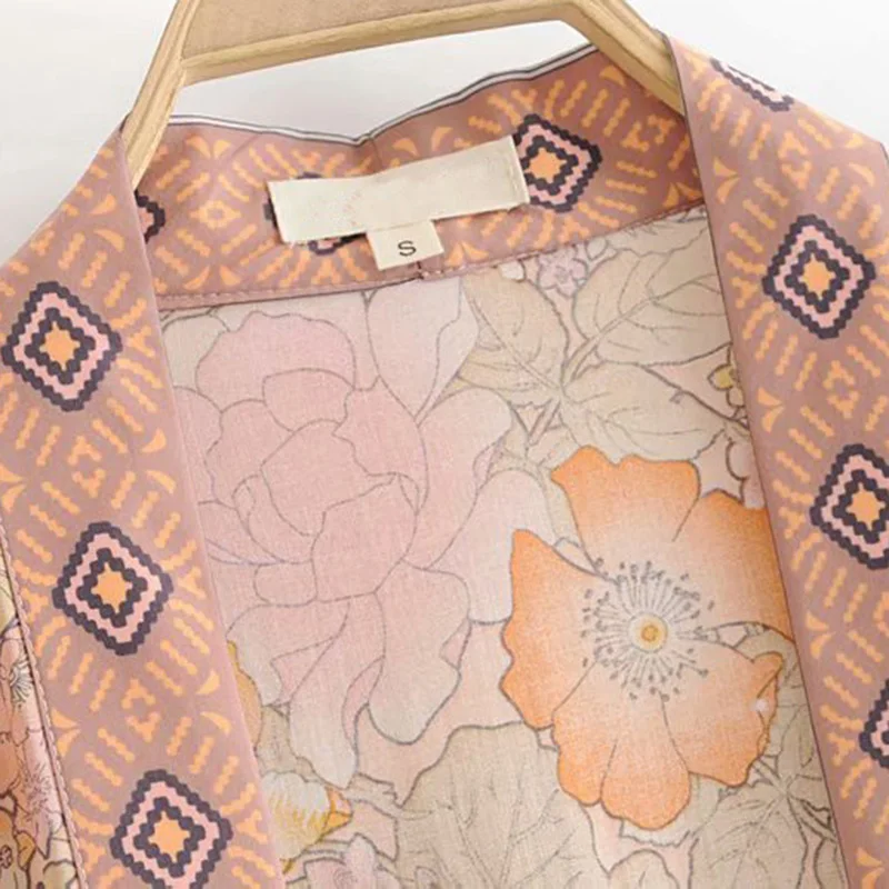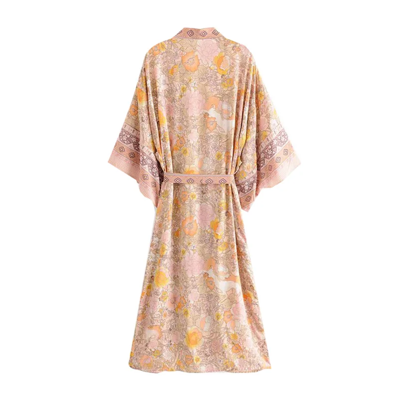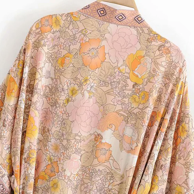 Product Name: Boho Chic été Vintage imprimé Floral avec ceintures Kimono femmes 2019 mode Cardigan lâche dames Blouses de plage Blusas Mujer