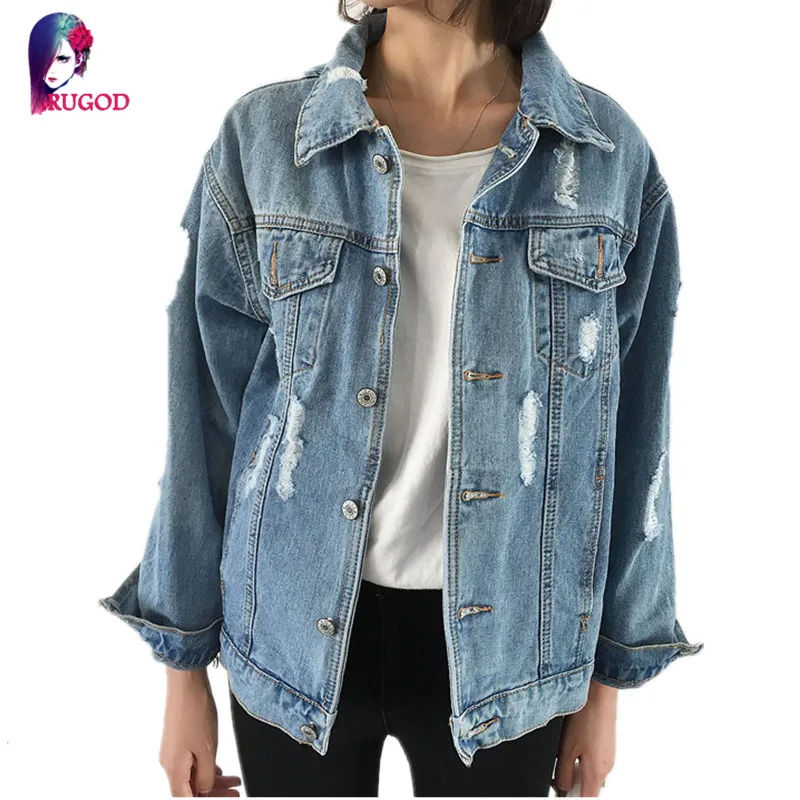 . (44% Off) Achat RUGOD jean veste femmes Casacos Feminino mince déchiré trous Denim veste Femme élégant Vintage Bomber veste 2018 basique manteaux Pas Cher En Ligne.
