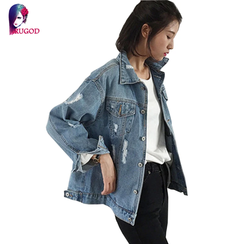 Special Offer RUGOD jean veste femmes Casacos Feminino mince déchiré trous Denim veste Femme élégant Vintage Bomber veste 2018 basique manteaux Discount 44% Today!