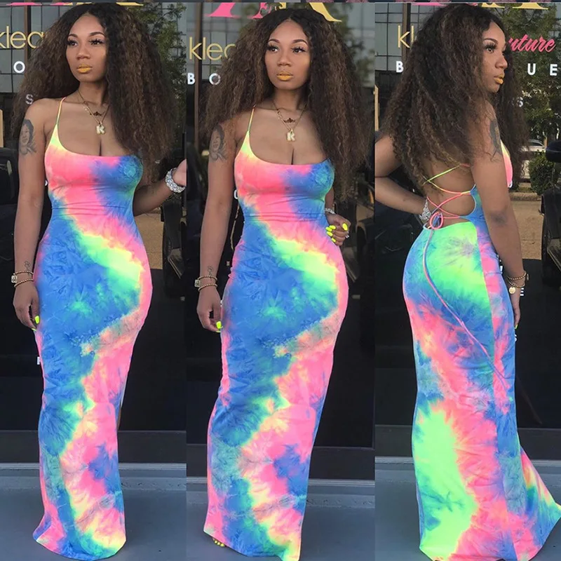 . (45% Off) Acheter ZKYZWX cravate teinture longue robe Maxi pour les femmes d été Vestidos robe de soleil côté fente dos nu à lacets robe de Club de pansement robes de plage Pas Cher En Ligne.