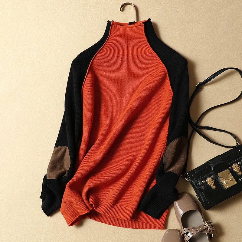 Product Name: Col roulé lâche femmes pulls femme Patchwork lâche épaissir chandails hiver tricoté Pull femme hauts manteau 0.47