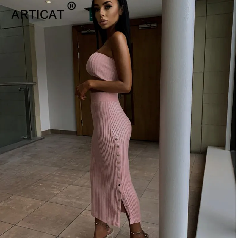 Product Name: Article blanc épaule dénudée robe d été femmes 2019 deux pièces tricoté boutons fendu taille haute parti Club moulante robe Vestidos