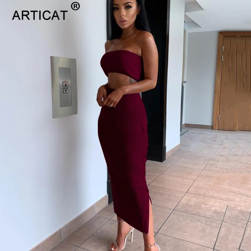Special Offer Article blanc épaule dénudée robe d été femmes 2019 deux pièces tricoté boutons fendu taille haute parti Club moulante robe Vestidos Discount 51% Today!