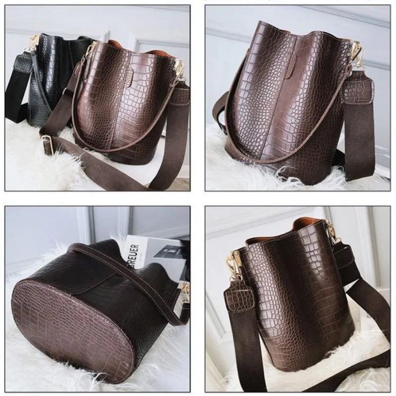 Product Name: Vintage décontracté seau sacs pour femmes sac à bandoulière Alligator motif qualité sacoche en cuir synthétique polyuréthane grand fourre tout Style populaire 2019