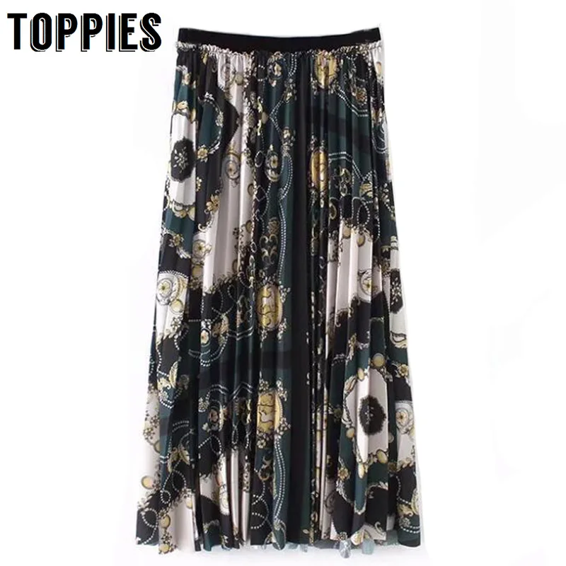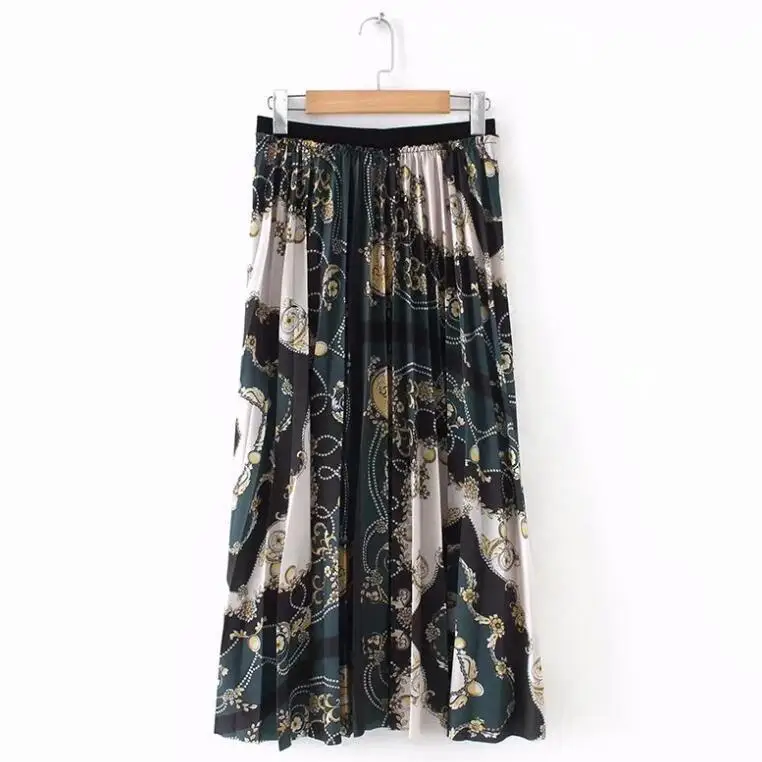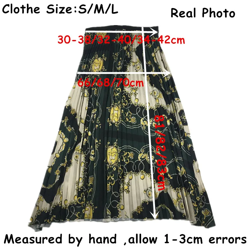 Special Offer 2019 printemps été imprimé rétro Vintage jupe plissée taille élastique imprimer jupe longue Discount 22% Today!