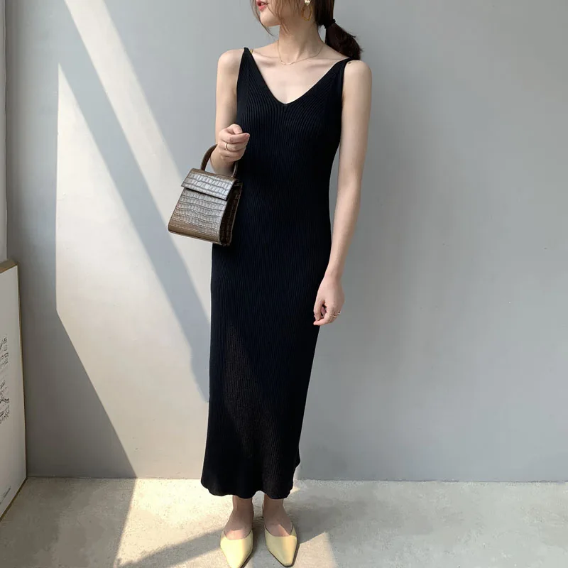 Product Name: RZIV 2019 automne hiver femme robe slim décontracté solide couleur tricot gilet robe fronde harnais pull robe