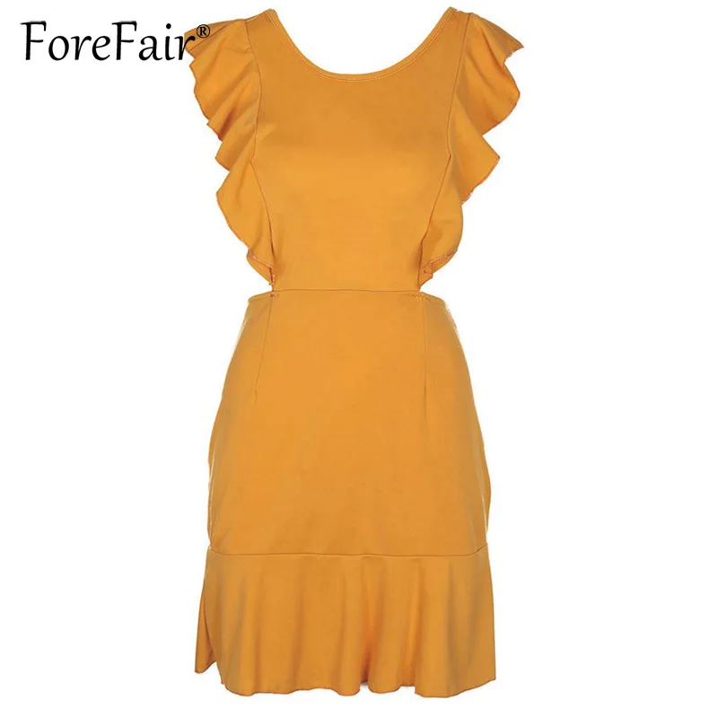 Product Name: Forefair Sexy robe dos nu 2019 femmes robes d été robes dames robe d été sans manches à volants jaune noir réservoir Mini robe