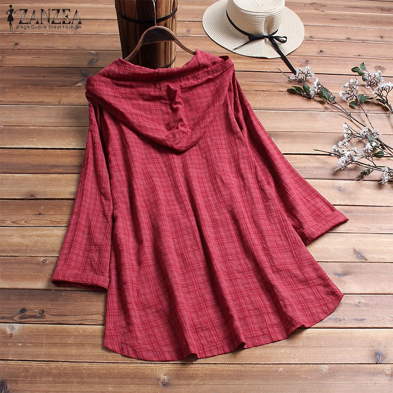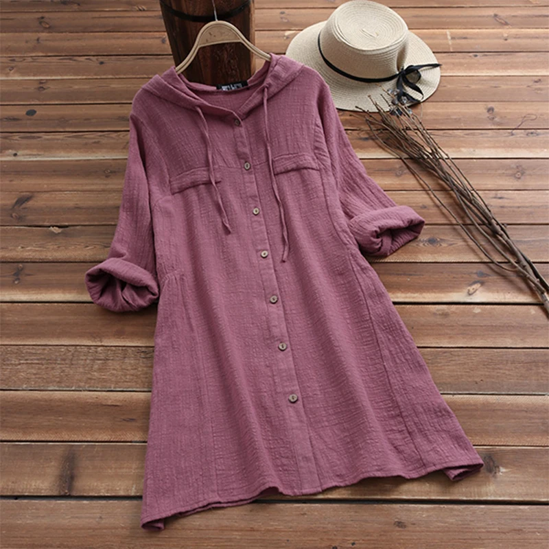 Product Name: Grande taille chemise en lin femmes été automne Blouse 2019 ZANZEA manches longues chemises femme bouton asymétrique Blusas tunique à capuche