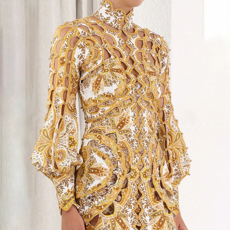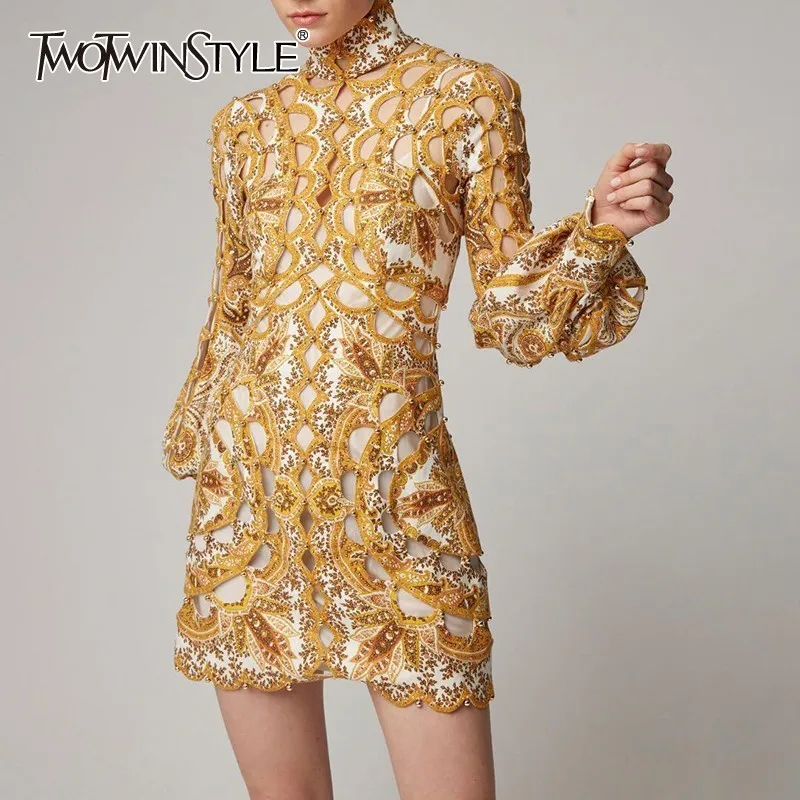 Product Name: Deuxtwinstyle robe pour femmes col montant lanterne manches lourd perles Sexy robes femme 2019 mode été nouveau