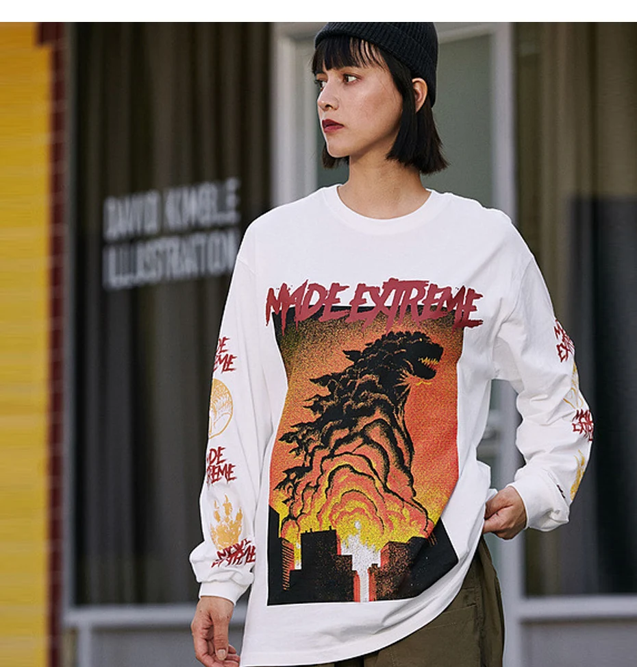 Special Offer Aelfric 2019 japon Style hauts monstre imprimé T shirt femmes été à manches longues Hip Hop coton T shirt Harajuku Streetwear T shirt Discount 45% Today!