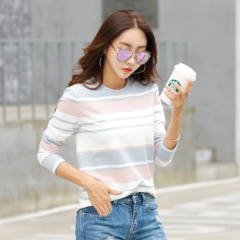 Product Name: Nouveau 2019 automne femme T shirt à manches longues rayé femmes T shirt confortable coton T shirt hiver hauts t shirts marque de mode Camisetas