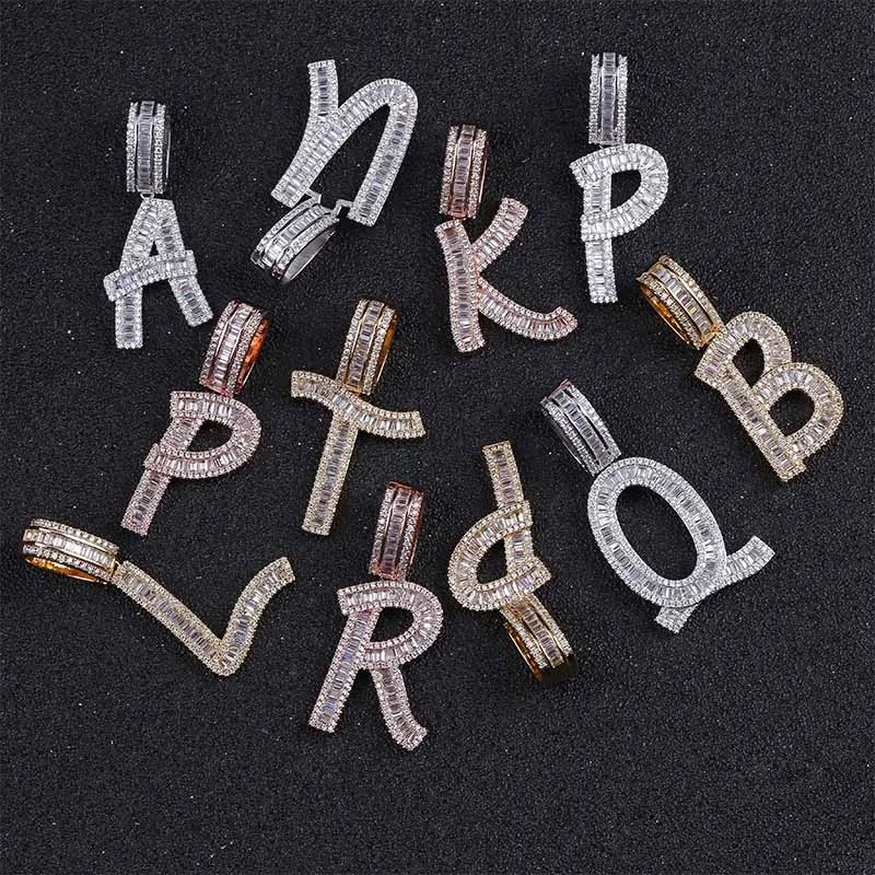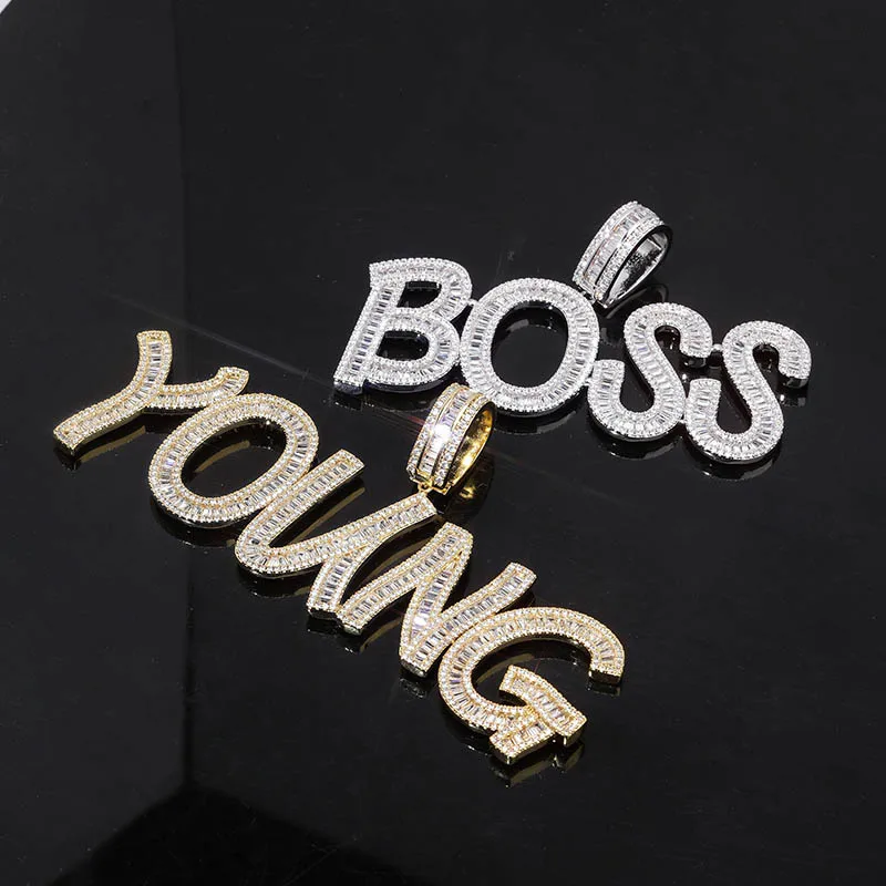 Product Name: TOPGRILLZ personnalisé nom Baguette lettres Hip Hop pendentif chaîne or argent Bling zircone hommes Hip Hop pendentif bijoux